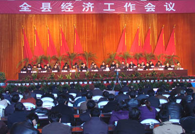2006年2月10日上午,全縣經濟工作會議在縣體育館隆重召開。這次全縣經濟工作會議的主要任務是,全面貫徹落實中央和省、市經濟工作會議和縣委十屆七次全體(擴大)會議精神,認真總結了2005年經濟工作,表彰了各項先進,全面部署了2006年各項目標任務,進一步統一全縣上下的思想認識,搶抓機遇,扎實若干,努力實現全縣經濟又快又好地發展,構建和諧當涂,為順利實施“十一五”規劃開好局、起好步。縣長操隆山作了全縣經濟工作報告,縣委書記毛長江發表了重要講話。縣委、縣人大、縣政府、縣政協、縣紀委、縣人武部負責同志,縣委委員、候補委員,縣紀委委員,縣人大常委、政協常委,曾擔任縣級實職的離退休老干部,各工委書記,各鄉鎮黨委書記、人大主席,鄉鎮長和文書,各村(居委員)總支(支部)書記、主任和縣直各部、委、局、辦負責人、部分機關干部代表等共計2000多名干部職工參加了會議。