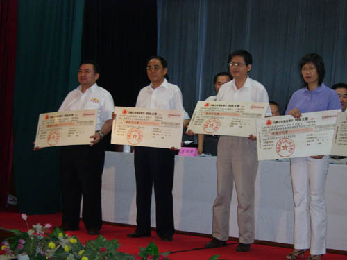2006年7月26日下午,馬鞍山市2005年獲省著名商標(biāo)企業(yè)表彰大會(huì)在市政府東二樓會(huì)議室舉行,出席本 次會(huì)議的主要領(lǐng)導(dǎo)有省工商局副局長(zhǎng)黃家華、市人大常委會(huì)副主任杜永田、市政府副市長(zhǎng)劉榮華、市政協(xié) 副主席孫文植、市政府副秘書長(zhǎng)王興無、省工商局商標(biāo)局局長(zhǎng)劉國建等。